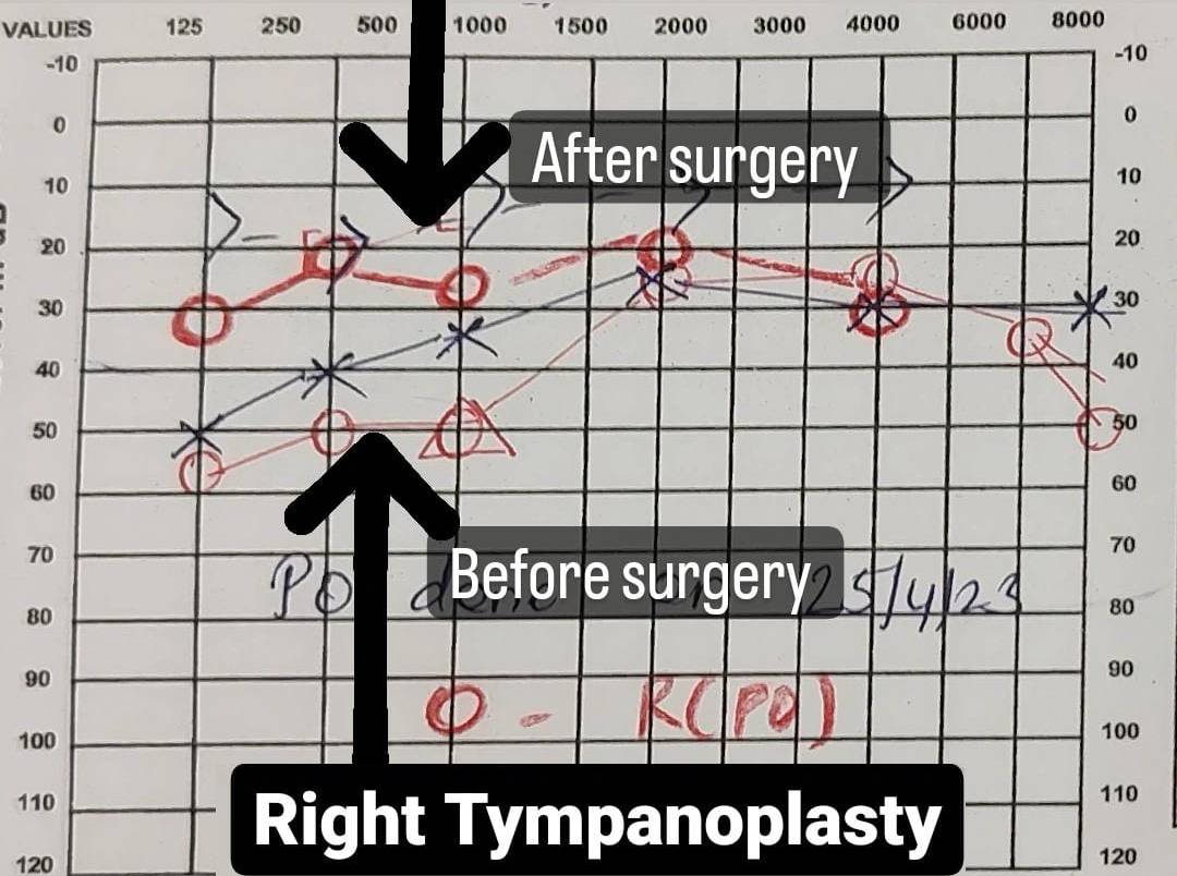 An ENT Surgeon uses certain tissue from around the ear to repair this hole in the ear drum and to restore your hearing.
